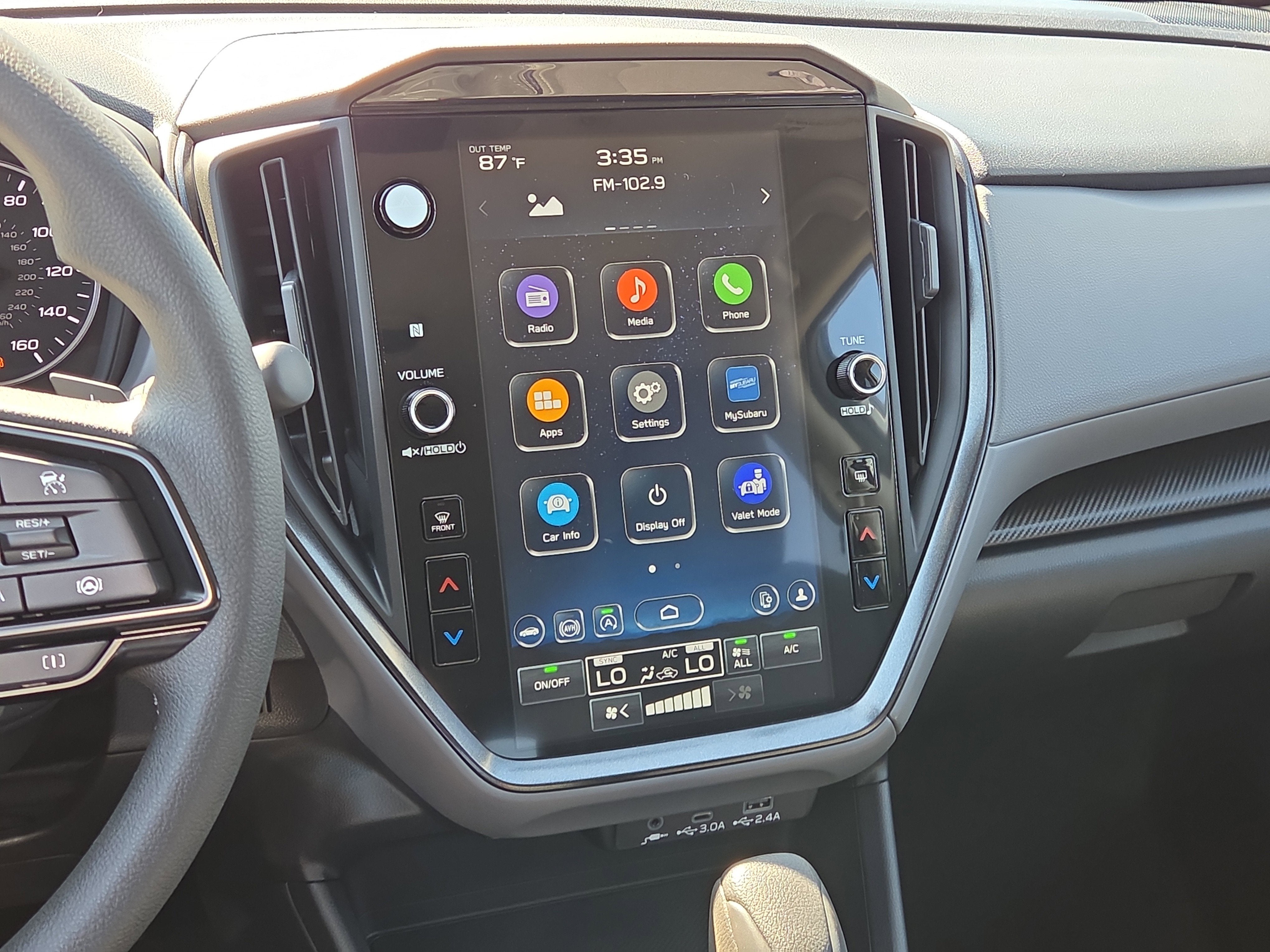 - Radio: Subaru 11.6" Multimedia Plus System -inc: AM/FM stereo, HD Radio, multi-touch gesture high resolution display screen, voice activated controls, Bluetooth® audio streaming and hands-free phone connectivity, Bluetooth® hands-free SMS text messaging connectivity, iPod control capability, smartphone integration: wired and wireless Android Auto w/full screen view and wireless Apple CarPlay w/full screen view, USB and Over The Air (OTA) audio system update, steering wheel audio system and Bluetooth® control switches, 6 speakers (2 dash panel tweeter, 2 front door and 2 rear door), illuminated 3.5mm auxiliary input jack, illuminated front USB A and C input/charge ports, connected services operation indicator, SOS emergency assistance: red SOS button and enhanced roadside assistance: blue i-button