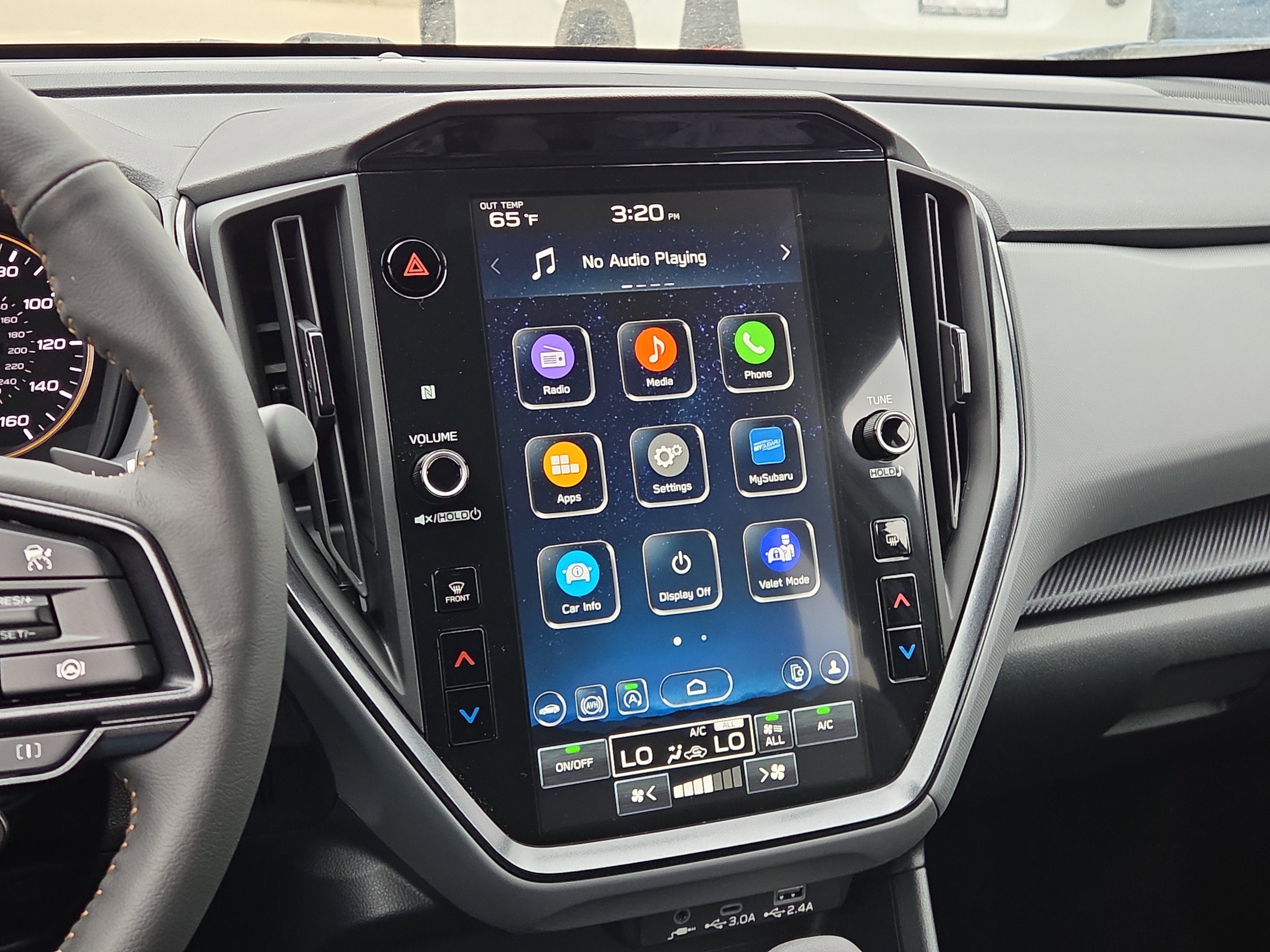 - Radio: Subaru 11.6" Multimedia Plus System -inc: AM/FM stereo, HD Radio, multi-touch gesture high resolution display screen, voice activated controls, Bluetooth® audio streaming and hands-free phone connectivity, Bluetooth® hands-free SMS text messaging connectivity, iPod control capability, smartphone integration: wired and wireless Android Auto w/full screen view and wireless Apple CarPlay w/full screen view, USB and Over The Air (OTA) audio system update, steering wheel audio system and Bluetooth® control switches, 6 speakers (2 dash panel tweeter, 2 front door and 2 rear door), illuminated 3.5mm auxiliary input jack, illuminated front USB A and C input/charge ports, connected services operation indicator, SOS emergency assistance: red SOS button and enhanced roadside assistance: blue i-button