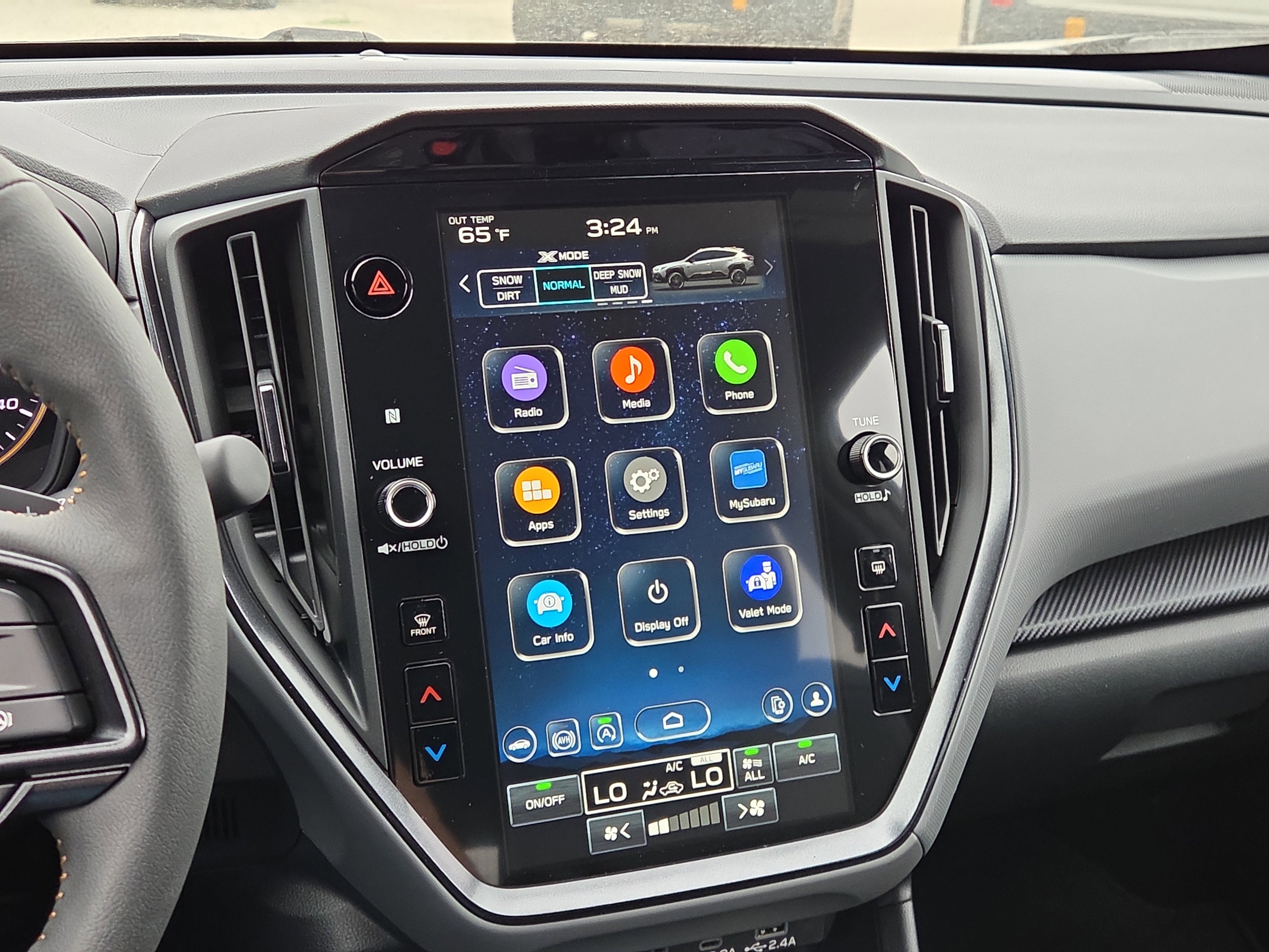 - Radio: Subaru 11.6" Multimedia Plus System -inc: AM/FM stereo, HD Radio, multi-touch gesture high resolution display screen, voice activated controls, Bluetooth® audio streaming and hands-free phone connectivity, Bluetooth® hands-free SMS text messaging connectivity, iPod control capability, smartphone integration: wired and wireless Android Auto w/full screen view and wireless Apple CarPlay w/full screen view, USB and Over The Air (OTA) audio system update, steering wheel audio system and Bluetooth® control switches, 6 speakers (2 dash panel tweeter, 2 front door and 2 rear door), illuminated 3.5mm auxiliary input jack, illuminated front USB A and C input/charge ports, connected services operation indicator, SOS emergency assistance: red SOS button and enhanced roadside assistance: blue i-button