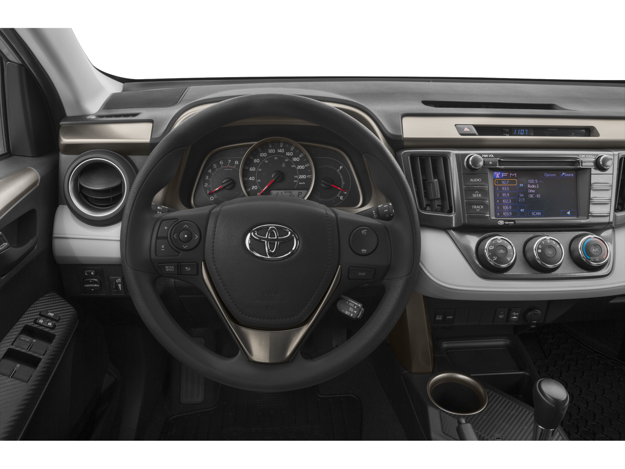 Step inside the 2015 Toyota RAV4 Limited and experience a refined and comfortable interior. The Ash Leatherette front seat upholstery offers a touch of luxury, while the Heated front seats provide warmth and comfort on chilly mornings. The Power driver seat with power reclining, lumbar support, cushion tilt, fore/aft control and height adjustable control allows you to find the perfect driving position. The Dual-zone front climate control ensures that both you and your passenger stay comfortable, no matter the weather. The Power moonroof lets you enjoy the sunshine and fresh air. The Power Liftgate offers convenient access to the cargo area, making errands and grocery shopping a breeze. The Memory seat remembers your preferred settings for the door mirrors. The Leather steering wheel adds a touch of sophistication.