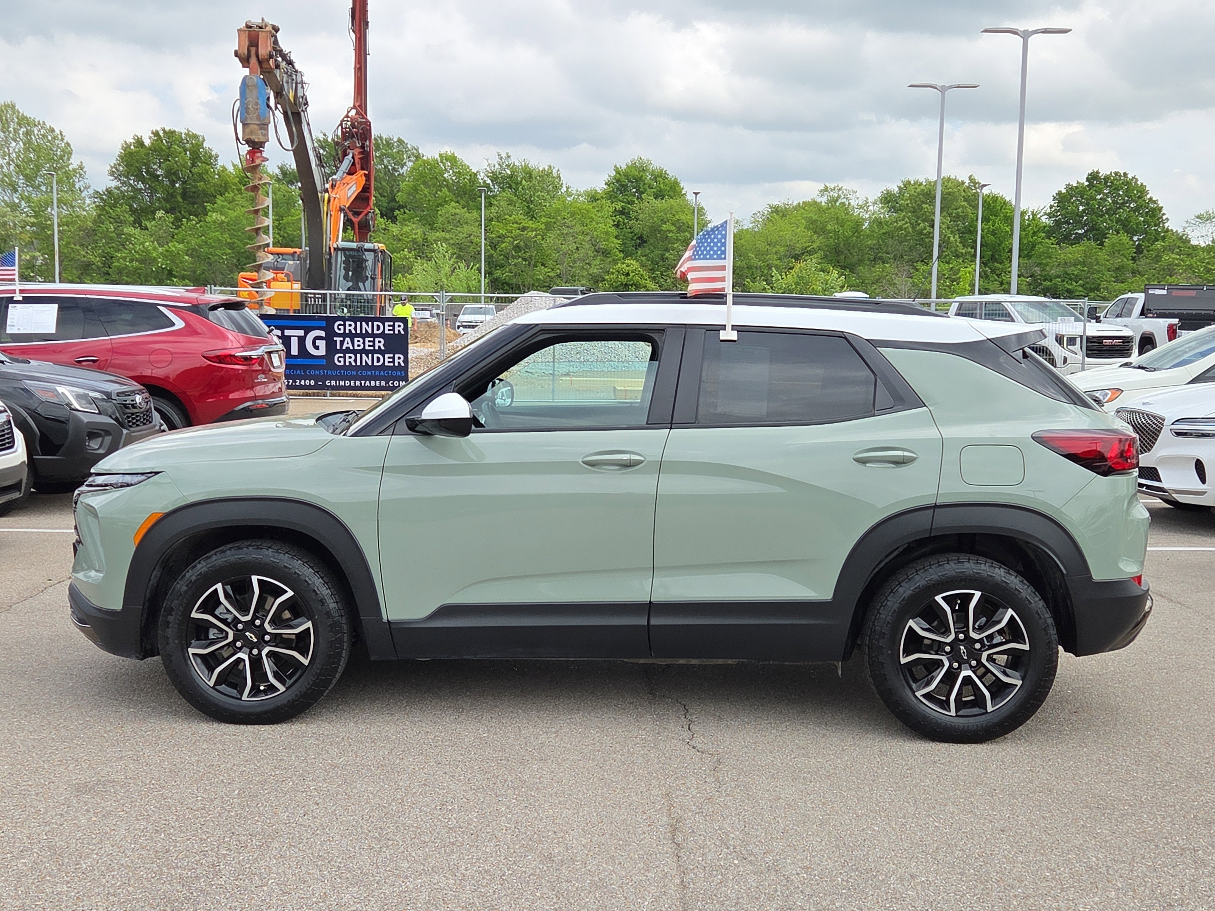 The 2025 Chevrolet Trailblazer FWD ACTIV stands out with its bold and rugged exterior design. The Cacti Green exterior color is sure to turn heads, while the Summit White Two-Tone Roof adds a touch of sophistication. The 17' High Gloss Black Machined Aluminum Wheels complement the vehicle's athletic stance. The Bumpers: body-color and Grille with chrome bar add to the overall aesthetic appeal. The vehicle also features Automatic Headlights and LED daytime running lights for enhanced visibility. A Spoiler adds a sporty touch to the rear of the vehicle.